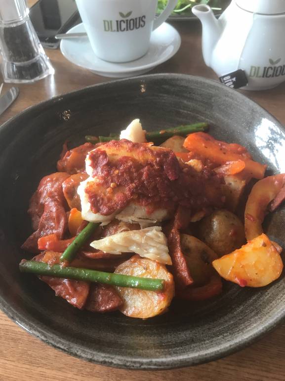 I should have spotted the Harissa sauce , my mouth is on fire !! Lovely cod loin from David Lloyd and only 500 calories